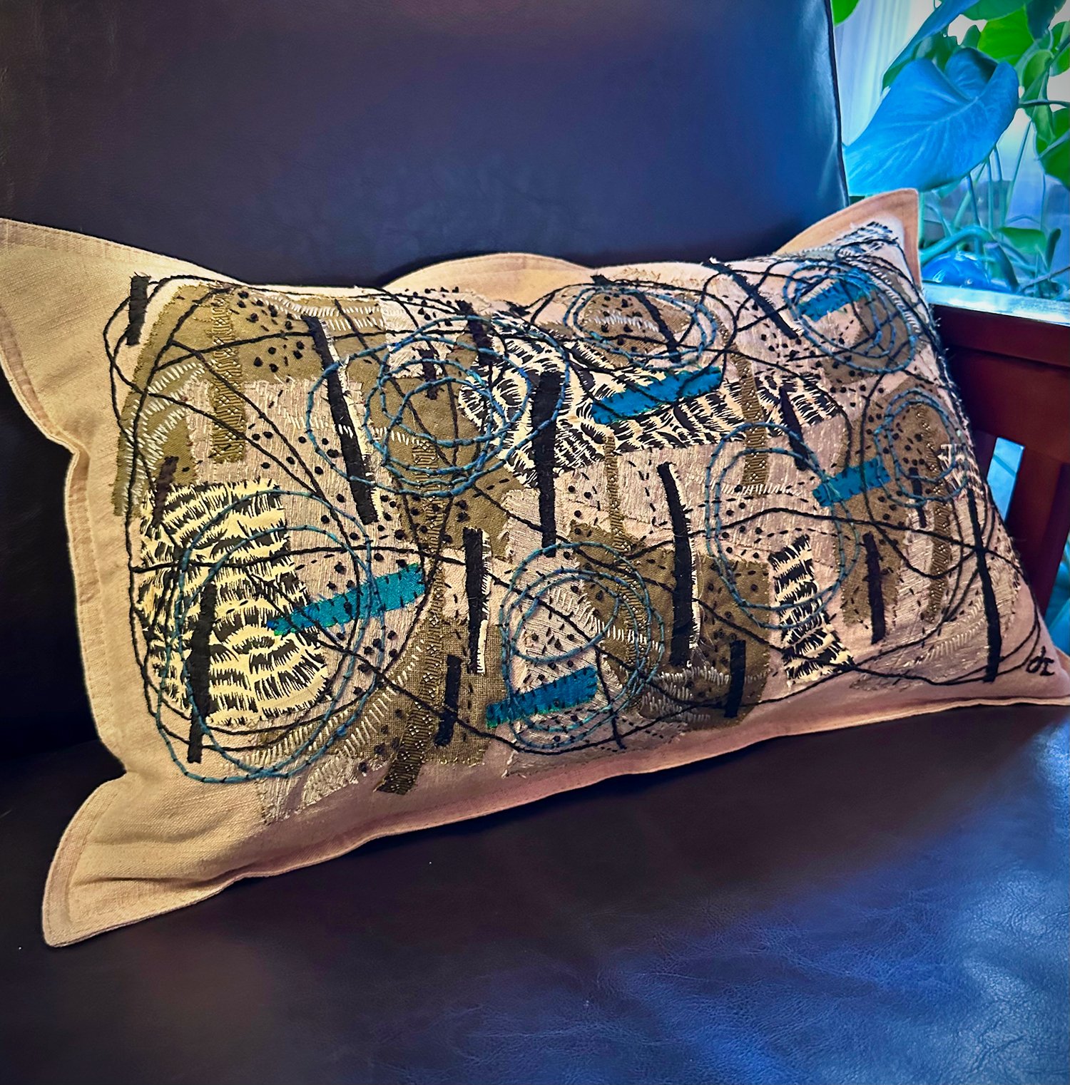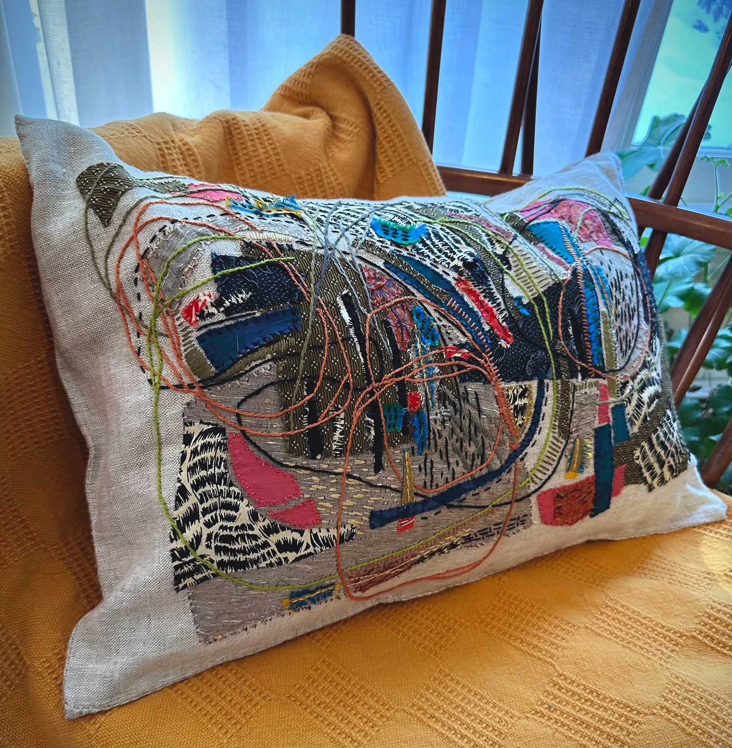 Work/ Textiles 2026 I’m so excited about this brand new direction for collaging using fabric and thread on raw linen! Swirl Emergence